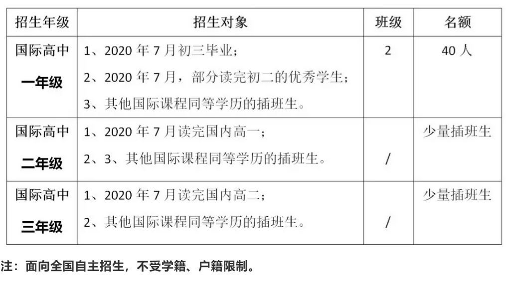 2020年秋季国际部招生对象和名额