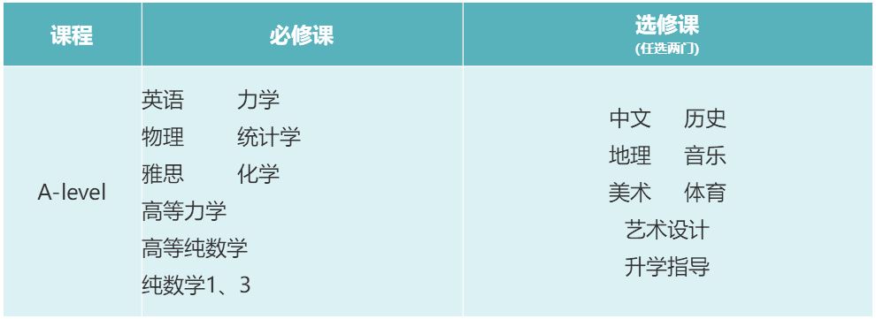 A-level 学术课程设置(升学课程):