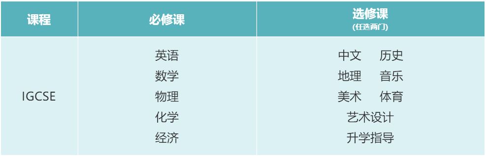 IGCSE 学术课程设置(基础课程):