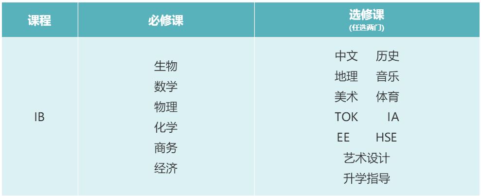 IB课程体系设置(升学课程):