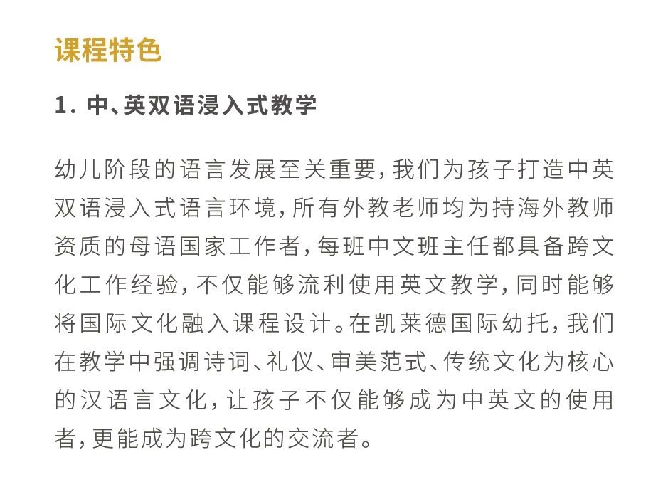 凯莱德幼儿双语学院课程设置