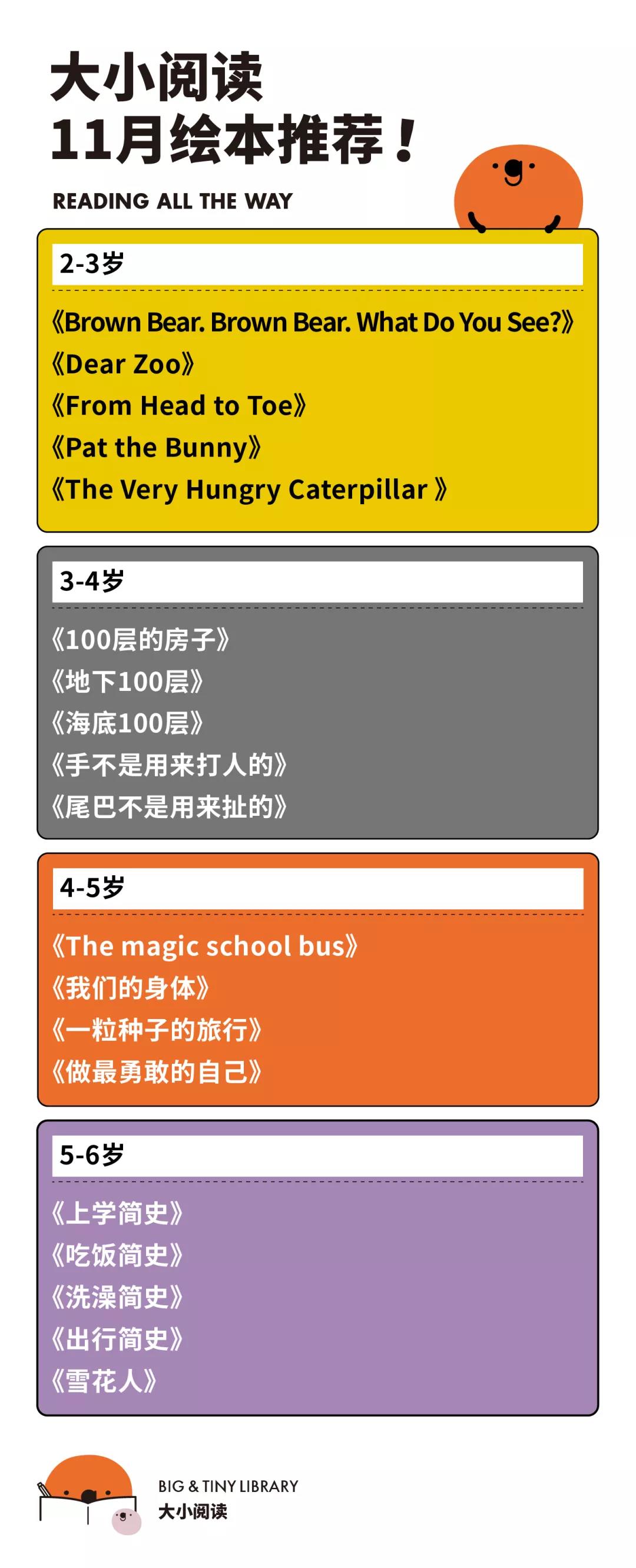 每个月,我们会为不同年龄段挑选出有趣的书籍,让孩子和家庭能更轻松地找到适合自己的读物,让阅读变成一种习惯。